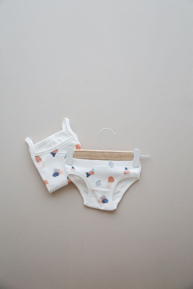 Pamuklu Kız Çocuk Atlet&Slip Külot İç Çamaşırı 2 Parça Seti Denizaltı Desenli