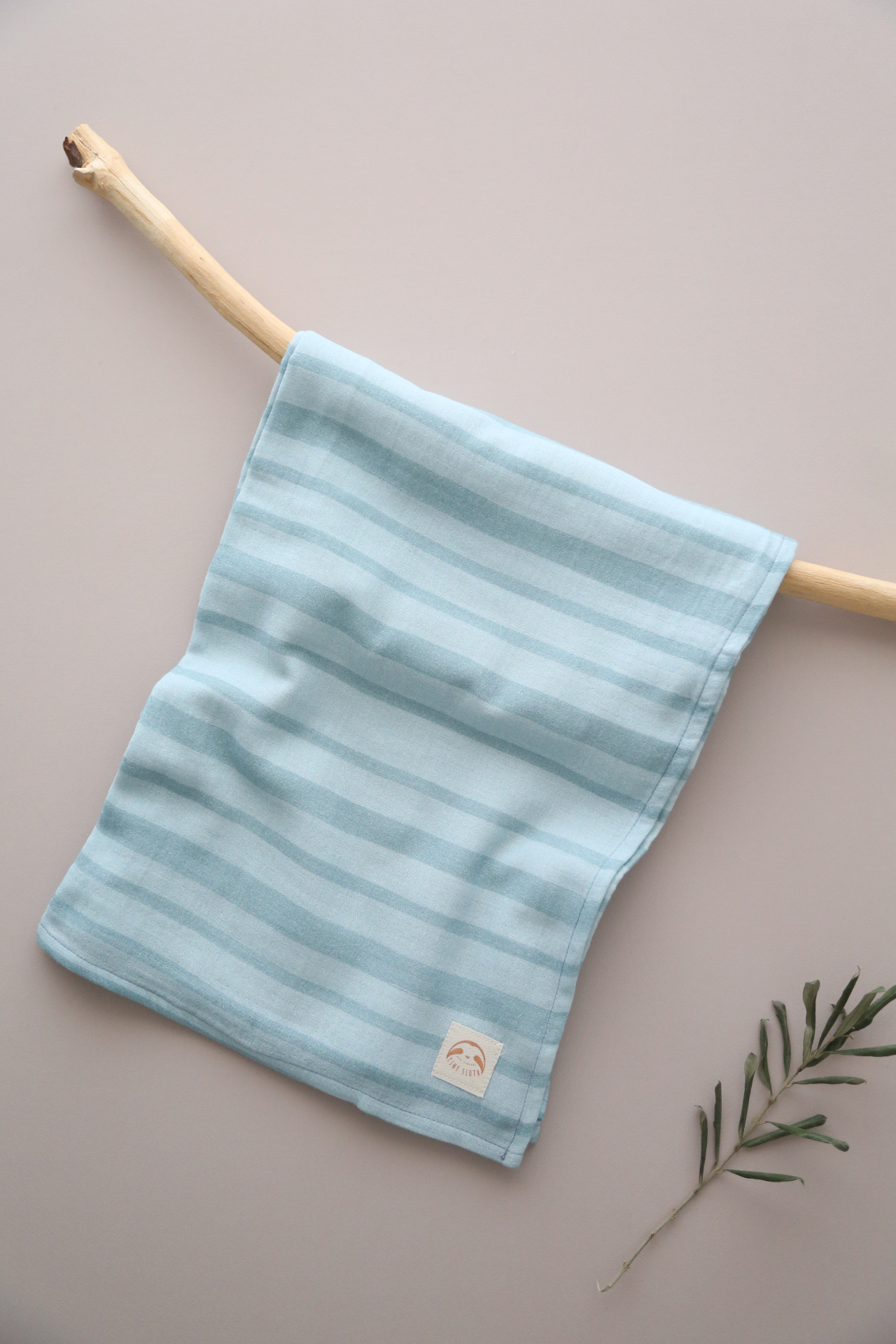 Turkuaz Çizgi Desenli 2 Katlı Müslin Battaniye